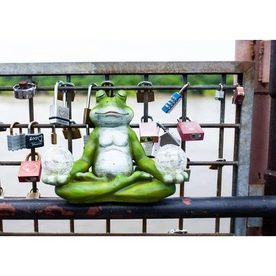 Get your zen on with this Illuminating Solar Yoga Garden Frog. As the sun sets and dusk settles in, the solar crackle balls will begin to glow. Beautifully hand painted garden statuary makes a great gift for the garden enthusiast and yogi alike.