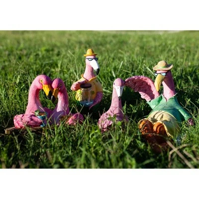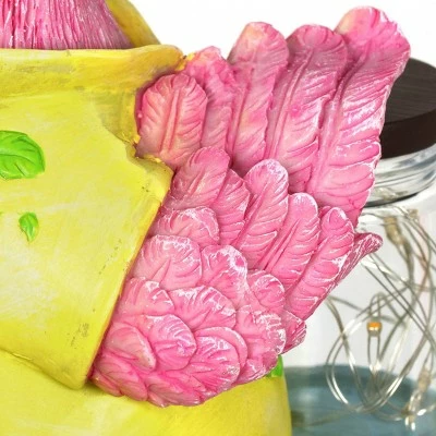 This fun loving pink flamingo holds a glass jar with a magical string of 6 illuminating LED firefly lights! Adorable flamingo statuary adds a tropical and endearing flair to your garden décor. Makes a great gift.