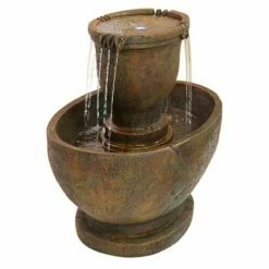 The Bernini Catania Cascading Waters Fountain makes a great addition to your yard when you want a fountain that can run constantly. This corded fountain features a large spherical shape with a spout at the top, so water runs down around the sides to the base. It adds a touch of style and relaxing sound to any setting.