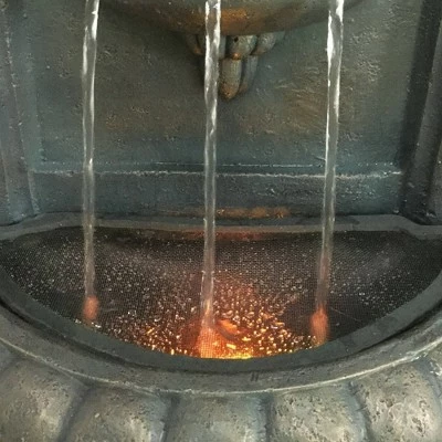 Create a relaxing oasis with the Teamson Home 32″ Lion Head Wall-Mount Fountain. This decorative water fountain features an elegant lion head cascading into two lower tiers to add tranquility to your indoor or outdoor space. The realistic stone textures create a more natural look, and the built-in warm LED lights illuminate the fountain to add ambiance to your decor. The soothing sound of running water flowing from the lion’s mouth into the bottom tiers provides a relaxing atmosphere while blocking out other noises. The durable polyresin construction is weatherproof and rust-resistant for long-lasting indoor or outdoor use. This fountain includes a pump, 72″ power cord, and all parts needed for quick and easy setup. This hanging fountain measures 18.25″ x 9.75″ x 32″ to fit along any outdoor wall.