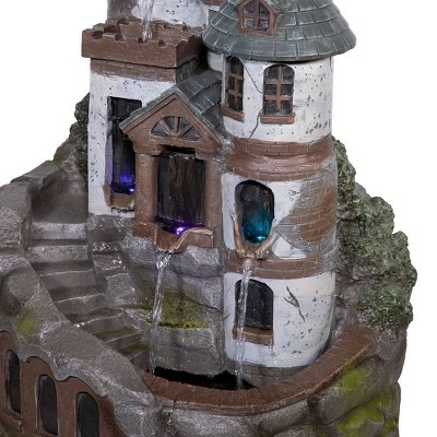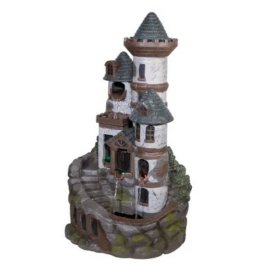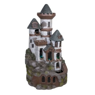 Add a touch of magic to your outdoor space with the Alpine Corporation Tower Castle Fountain. This stunning castle is constructed with durable polyresin and cement but finished to look like stone. The statue is weather-proof, rust-resistant, and durable for years of quality use. The relaxing, single stream falling water is sure to bring peace and tranquility to your home! LED lights illuminate your space, drawing attention to the relaxing water pools day or night for added ambiance. The statue is perfect for your garden, patio, deck, porch, or yard space. Looks great indoors, too! With a 1-year warranty, you can be confident in the quality of your purchase. Statue measures 23″L x 19″W x 35″H for use in yards of any size.