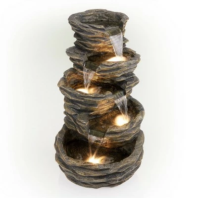 - VERSATILE GARDEN DÉCOR: Contemporary cascading water fountain with natural look and replaceable white LED lights will provide a tranquil and soothing addition to your indoor or outdoor living space