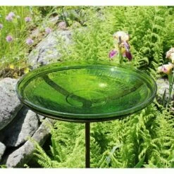Looking for garden decorations and accessories to draw wildlife right to your home? Reflective and brilliant, our Crackled Glass Birdbath Bowls are sparkling gems in the garden. Bowls are made from hand-blown glass in five vibrant colors, measuring 14” diameter x 2 ½”D. Available for purchase alone, or with our wrought iron Birdbath Hanging Ring or Cradle and Garden Stake, these colorful birdbaths create a bright pop anywhere in the garden. Birds will enjoy a safe place to cool off and drink some water, and gardeners will love having this beautiful piece to accent the plantings. This charming accessory makes a great gift for the avid gardeners, bird-watchers alike. These bowls are also designed to fit our wrought iron bases the Short Stand II (GBS-25)and Ring Stand (FB-14) for table top or garden.