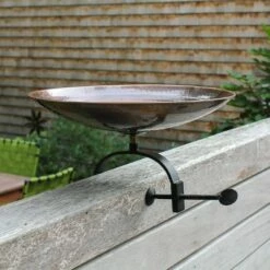 The lovely Lily Pad Birdbath is a welcoming cool oasis for your backyard friends. A delicate white lily flower perches at the edge of the green patina leaf. The threaded bowl is available alone or with a Threaded Stake (BB-14). It can also be used with any of our mounting brackets for poles, posts or handrails.