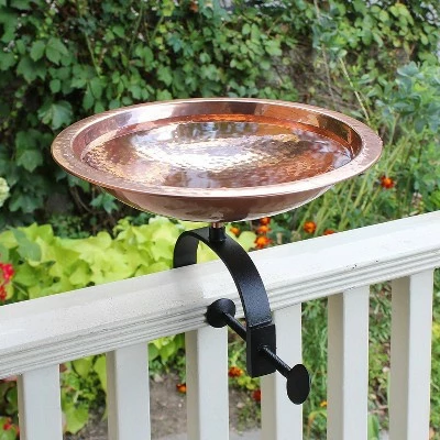 - OVER RAILING HAMMERED COPPER BIRDBATH: This Hammered Copper Birdbath bowl is a classic garden accent, the wide rim lets birds perch while drinking and bathing for close observation
