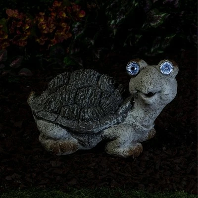 Welcome your house guests with the warm and inviting 10″ Outdoor Solar Powered Turtle Yard Statue with LED Lights from Alpine Corporation. This statue features an adorable smiling turtle that provides a unique and decorative cute addition to your home’s exterior décor. The lighted yard art is powered by solar energy to keep your outdoor yard statue lit up and features a pair of white LED lights located in the turtle’s eyes. Constructed from durable magnesia, the yard art is made tough for outdoor use and is weather-resistant for long-lasting, quality use on your porch, patio, or flowerbeds. Add one or multiple statues to create an enchanted garden display. The yard décor is perfect for display on pathways, entryways, decks, courtyards, and outdoor living spaces. The outdoor garden statue measures 16″L x 12″W x 10″H to fit almost any outdoor space and includes a one-year manufacturer’s warranty from date of purchase.