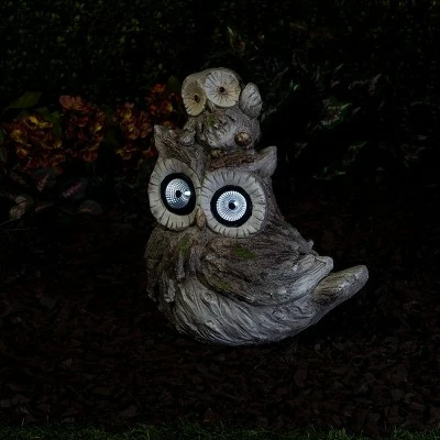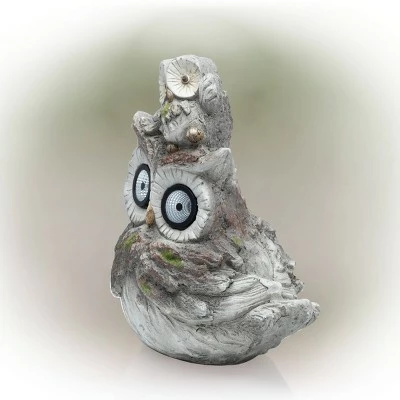 Welcome your house guests with the warm and inviting 15″ tall Outdoor Solar Powered Owl and Owlet Yard Statue with LED Lights from Alpine Corporation. This statue features a wide-eyed owl and its owlet that provide a unique and decorative playful addition to your home’s exterior décor. The lighted yard art is powered by solar energy to keep your outdoor yard statue lit up and features a pair of warm white LED lights located in the adult owl’s eyes. Constructed from durable magnesia, the yard art is made tough for outdoor use and is weather-resistant for long-lasting, quality use on your porch, patio, or flowerbeds. Add one or multiple statues to create an enchanted garden display. The yard décor is perfect for display on pathways, entryways, decks, courtyards, and outdoor living spaces. The outdoor garden statue measures 12″L x 9″W x 15″H to fit almost any outdoor space and includes a one-year manufacturer’s warranty from date of purchase.