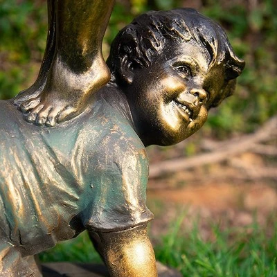 Add a touch of childish whimsy to your outdoor space with the Alpine Corporation Girl and Boy Drinking Water Fountain. This stunning fountain is constructed with durable polyresin and stone powder with an antique bronze and patina finish to match any decor. The fountain is weather-proof, rust-resistant, and durable for years of quality use. With its antique-look, intricate details and portrayal of timeless children, this Alpine fountain is sure to bring peace and tranquility to your home! The fountain comes with everything you need to set-up, plug it in and enjoy! It’s perfect for your garden, patio, deck, porch, or yard space. With a 1-year warranty, you can be confident in the quality of your purchase. Fountain measures 19″L x 10″W x 27″H for use in yards of any size.