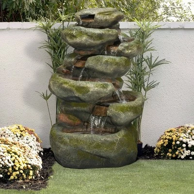 - VERSATILE GARDEN DÉCOR WITH LED LIGHTS: Contemporary cascading water fountain with natural look and LED lights will provide a tranquil and soothing addition to your indoor or outdoor living space