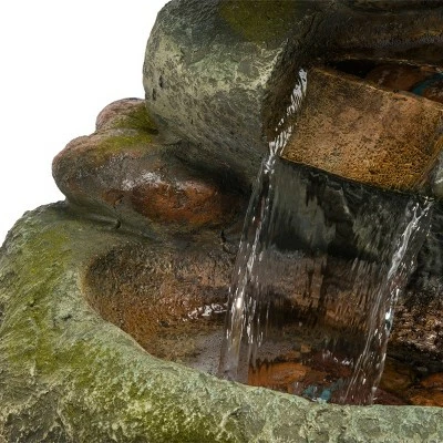 Unplug from the day and meditate to the sound of flowing water with Alpine’s 47″ tall Indoor/Outdoor Multi-Tier Waterfall Mossy Rock Fountain with LED Lights. This relaxing floor fountain statue provides a tranquil and soothing addition to your yard, porch, or patio. Constructed from durable polystone and fiberglass, the fountain is weatherproof, rust-resistant, and resilient for use in your home’s interior décor or outside. This unique and versatile décor piece includes LED lights for a tranquil and soothing addition to your home’s backyard or indoor décor. Replicating a rainforest scene, the fountain has a natural appearance and realistic stone textures. Relax to the sounds of the calming natural water flow as it trickles cascades down through the rock pools. For quick installation and convenient operating, the fountain includes all necessary parts, including a pump, to begin creating an outdoor oasis. This fountain measures 30″L x 24″W x 47″H to fit almost any indoor or outdoor space and includes a one-year manufacturer’s warranty from date of purchase.
