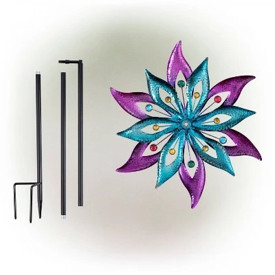 - JEWELED FLORAL WIND SPINNER: Striking colorful spinner is embedded with faux gems for a more stunning look.