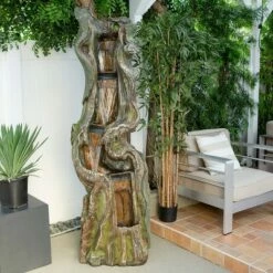 Alpine Corporation 79″ Rock Waterfall Fountain With LED Lights – Brown