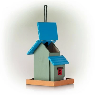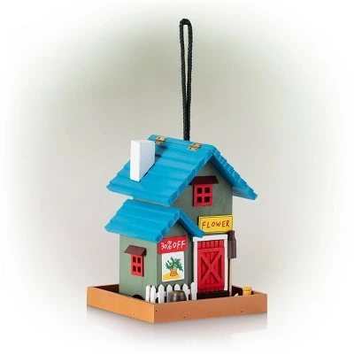 Provide a feeding station or a resting perch for your feathered garden visitors with this colorful and creative 9” tall Outdoor Hanging Colorful Flower Shop Bird Feeder from Alpine Corporation. This hanging or table bird feeder will add color and charm to your yard or patio, while keeping feathered friends fed. The vintage style wooden bird feeder provides a sanctuary for feathered friends, and will add timeless charm to your outdoor living space or yard. Constructed from durable, weather-resistant wood, the bird feeder has a roof hatch for easy access to add bird seed, for cleaning, and maintenance. A brightly colored appearance designed after a floral shop adds a pop of color to your outdoor area. Add the bird feeder to your backyard or porch and relax to the melodic sounds of birds chirping, while giving your lawn or garden visual interest. Its beautiful design attracts and invites your feathered friends to rest, feed, and migrate into your garden habitat, bringing life to your outdoor scenery. The bird feeder includes a 10″ long rope to hang your feeder and begin creating an outdoor home for sparrows, wrens, and more. This versatile feeder can also be used as an outdoor tabletop feeder. All necessary parts for install are included. This outdoor bird feeder measures 7″L x 7″W x 9″H and 19″ H with included rope, and includes a one-year manufacturer’s warranty from date of purchase.
