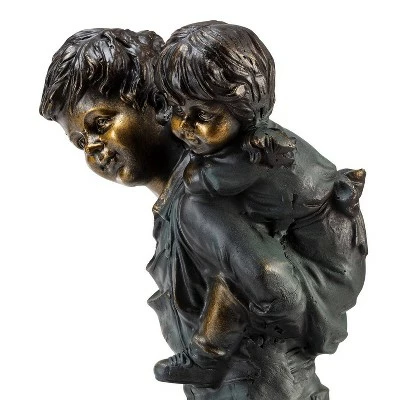 - INTERIOR OR EXTERIOR STATUE: Vintage look bronze with patina finish statue featuring a young boy giving a little girl a piggyback ride will take you back in time to a bygone era, and captures the innocence of childhood