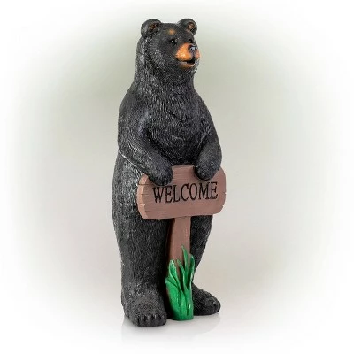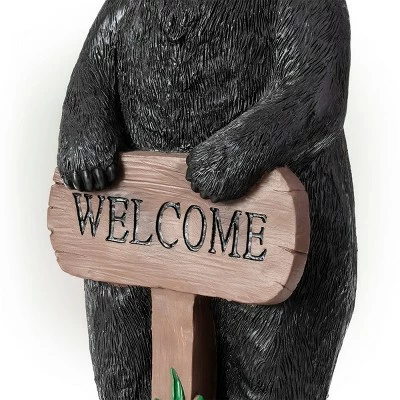 - OUTDOOR STATUE: Lawn figurine featuring an adorable standing black bear holding a welcome sign, will bring fun and a warm welcome to your front yard, garden, patio, or outdoor area