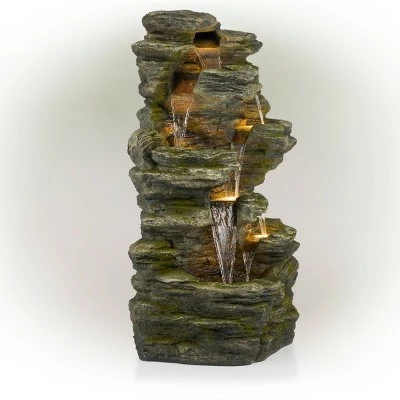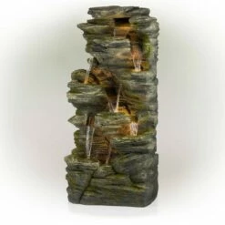 - VERSATILE GARDEN DÉCOR WITH LED LIGHTS: Contemporary cascading water fountain with natural look and LED lights will provide a tranquil and soothing addition to your indoor or outdoor living space