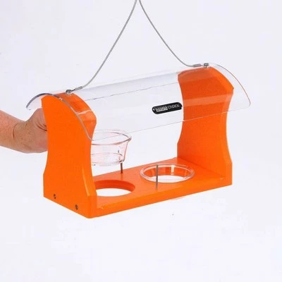 - CLEAR ACRYLIC COVER: Provide Orioles with their favorite foods as well as a place to rest and take cover from the elements The clear acrylic top allows birds to see the food from above, while providing cover as they eat and keeping rain off of the food