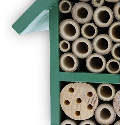 Item DescriptionMason Bee Houses for Garden, Green Bee Hive (7.4 x 10.15 x 4.65 in)MASON BEE HIVE: This bee home is suitable for a wide variety of bee species, including mason bees, carpenter bees, and orchard beesIMPROVE POLLINATION: Healthy beneficial mason bees visit up to 1000 plants a day, this garden bee house is an ideal bee starter hive for attracting mason bees; enjoy an abundance of vegetables and flowers while simultaneously saving the beesDIMENSIONS: Bee hotel measures 7.4 x 10.15 x 4.65 inches and is designed with varying tube diameters to attract different species of beesHIGH QUALITY: Crafted from pine wood to provide a sturdy shelter for your bees while they nest; an ideal alternative to paper or cardboard bee hivesWHAT’S INCLUDED: Includes 1 bee hive box; designed to last 1-2 seasonsNative bees are effective pollinators and a garden’s best friend, this insect hotel will help increase the population of beneficial bees, and is as decorative as it is functional. Easily place this beehive in the garden, patio, tree, fence, or wall. The angled roof will protect bees from harsh weather conditions.Product names are trademark of listed manufacturer or other owners, and are not trademarks of eForCity Corp. The manufacturer does not necessarily endorse use of these products.