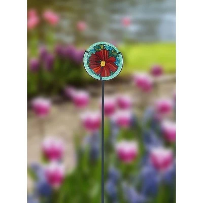 This glass and metal garden stake from Creative Motion Industries is the perfect addition to any yard. It features a beautiful and intricate floral design and installs in seconds. Just step on the foot bar at the bottom of the stake to push it into the ground. The floral medallion measures 6.3” in diameter.