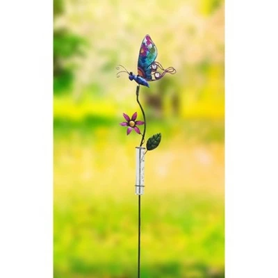 This metal garden stake from Creative Motion Industries will add a great touch to your yard. It features sturdy metal construction, a colorful butterfly design and installs in seconds. It even has a built-in rain gauge! Just stick it in the ground, sit back and relax. This metal garden stake is rust resistant to last for years to come.