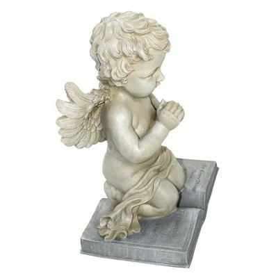 Your spirit will soar at the promise of hope inscribed in this contemplative cherub statue. With feathered angel wings and a book with readable text, this inspirational baby angel sculpture is grounded in the everlasting faith of life’s beauty. Our Design Toscano-exclusive prayerful cherub sculpture is cast in quality designer resin with a two-tone faux stone finish to highlight every delightfully angelic detail. Another quality Toscano garden angel statue!