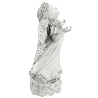 With arms outstretched, this cherubic angel sculpture lifts her face in a pure and joyful celebration of all the bounty God has provided! Sculpted with a wonderfully detailed face, exquisite feather wings and petticoats of lace, our over two-foot-tall Design Toscano-exclusive angel statue is cast in quality designer resin with an antique stone finish. Makes a heavenly gift and a reminder of thankfulness in home or garden!