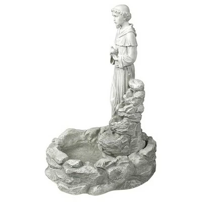 Create a place of quiet contemplation with the lilting water music surrounding our Italian patron saint of nature. St. Francis, so gentle that birds nest in his hands, composes soothing sounds as water cascades down the quality cast designer resin rocks into the reflecting basin below. With a fine stonework finish, this classic, exclusive sculptural fountain is an investment in garden art and a truly spiritual resting place. Features an integrated, UL-listed, indoor/outdoor pump. Simple assembly required. 16″Wx20″Dx29″H. 22 lbs.
