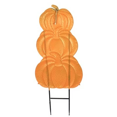 This Decorative Metal Pumpkin Topiary Garden Stake Consist Of Three Pumpkins In Colors Of Dark Orange, Orange And Yellow. Across The Bottom Is A Green Banner With “Welcome” Stenciled In White. It Will Be A Great Addition To Your Fall And Thanksgiving Harvest Display! The Pumpkins Are Embellished With Green Leaves And Swirling Vines. The Sturdy Construction Will Keep This Addition To Your Seasonal And Holiday Decorations Ready Season After Season While The Narrow Profile Makes It Easy To Store When Not In Use.. New.. Measurements 40.0 In H X 17.0 In W X 1.25 In D. . Made Of Metal. No Assembly Required. Indoor Or Outdoor Use. Imported. NOTE: Note, When Received, Product May Require Slight Reshaping Or Fluffing Due To Transportation. We Recommend That All Products (Metal, Fabric, Wood, Cement, Polyresin) Placed Outdoors Be Sprayed Each Year With A Non-Yellowing, Clear Coat Garden Decor Protection Spray Found At Your Local Craft Store To Preserve Their Original Appearance And To Extend The Life Of Your Product