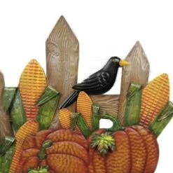 Get Ready To Decorate For The Fall. Use For The Halloween And Thanksgiving Season . A Two Prong Decorative Garden Stake With Orange Pumpkins And Ears Of Corn Up Against A Rustic Brown Fence With A Black Bird / Crow Perched Upon It. Banner On Sign Says ‘Happy Harvest’. The Sturdy Construction Will Keep This Charming Addition To Your Holiday Decorations Ready Season After Season While The Narrow Profile Makes It Easy To Store When Not In Use.. New. Measurements 35 In H X 26 In W X 1 In D. . Made Of Metal. No Assembly Required. Indoor Or Outdoor Use. Imported. NOTE: Note, When Received, Product May Require Slight Reshaping Or Fluffing Due To Transportation. We Recommend That All Products (Metal, Fabric, Wood, Cement, Polyresin) Placed Outdoors Be Sprayed Each Year With A Non-Yellowing, Clear Coat Garden Decor Protection Spray Found At Your Local Craft Store To Preserve Their Original Appearance And To Extend The Life Of Your Product.