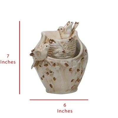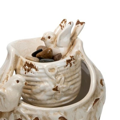 The Foreside Ivory Birds Fountain is a great way to bring the birds to the bird enthusiast in your life! Simple to maintain, this fountain has combined the look of a birdbath and the sounds of a well! Distressed, the finish brings this piece to life giving it extra dimension and movement along the wings of the birds! Place in your home or office today!