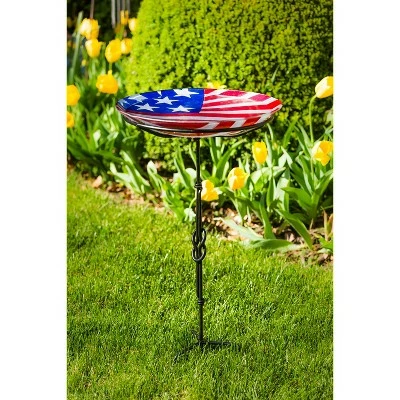With an embossed American flag design, this glass bird bath is perfect for patriotic holidays, the armed forces, and beyond! Great for year round display, this birth bath is made of durable outdoor-safe glass and measures 18 inches.