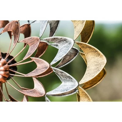 This kinetic wind spinner is copper and silver with a floral shape / design. It includes a 3 prong Stake and Pole: .87″=22mm. It’s large at: 24″W x 10.25″L x 75″ H. Watch the video to see it in motion. Assembly required. At Evergreen, we are committed to producing premium, quality products to bring a touch of color and personality to your home. We respect and celebrate the uniqueness in everyone by offering one of the world’s largest selections of home and garden decor.