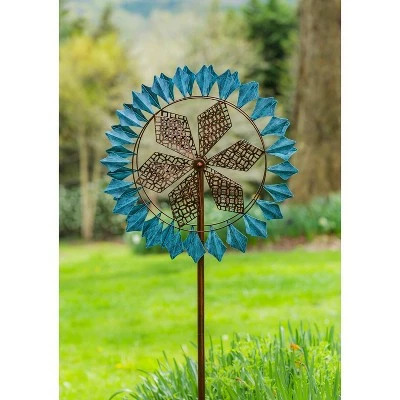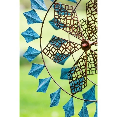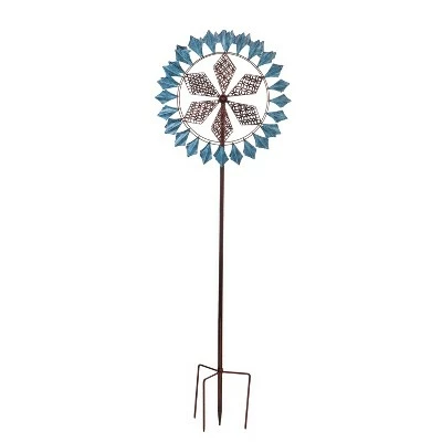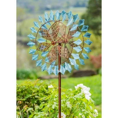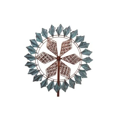 This kinetic wind spinner is shaped like a copper flower inside and has green verdigris petals attached to a ring on the edges. It includes a 3 prong Stake and Pole: .87″=22mm. It’s large at: 24″W x 10.25″L x 75″ H. Watch the video. Assembly required. At Evergreen, we are committed to producing premium, quality products to bring a touch of color and personality to your home. We respect and celebrate the uniqueness in everyone by offering one of the world’s largest selections of home and garden decor.