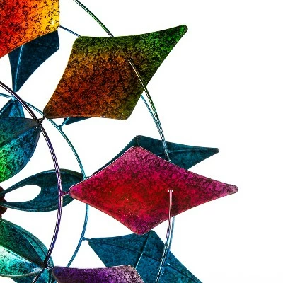 Transform your garden or yard with the mesmerizing movements of this Diamond Circle Wind Spinner. Featuring rainbow-colored and diamond-shaped panels that come to life with every passing breeze, this wind spinner harnesses the power of nature with breathtaking beauty. Watch as the layered panels spin in opposite directions for a stunning display in your outdoor space. This striking kinetic is made of powder-coated metal with a weather- and rust-resistant finish to prevent fading. After some light assembly, installing the wind spinner is easiest in moist soil or grass. Push the bottom prongs into the soil until they are completely covered – no tools are necessary.