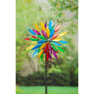 - This wind spinner features a multicolor floral design that offers an entrancing spin.
