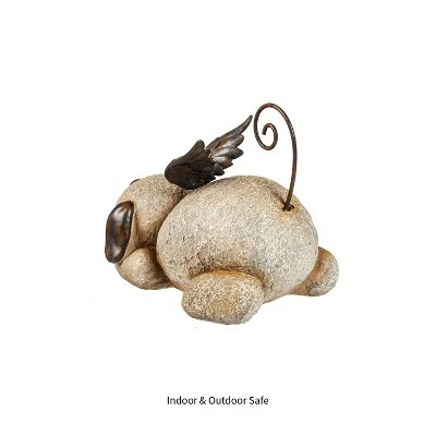 This carved stone dog memorial statue is a simple way to remember loved pets who have left us. Crafted of textured polystone, the dog statue features little wings and a distressed finish that adds to its rustic appeal.