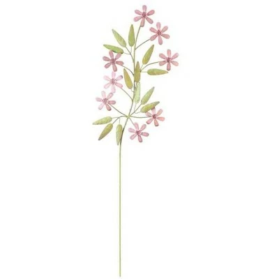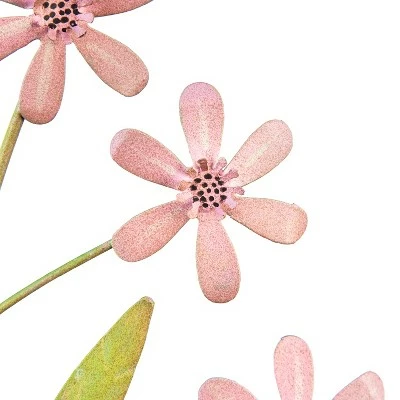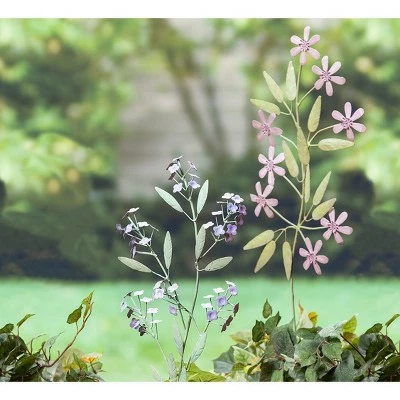 Capture the epitome of spring in your outdoor space with this assortment of 2 artisan floral metal garden stakes! This set of 2 stakes includes pink and periwinkle dainty flowers with textured embossing that brings this decor to life. Each design features feature pretty pastel details for a little extra character. The exquisite hand-painted flower stakes are perfect for display in a garden, flower bed, lawn, and more. Made of durable metal with a weather-resistant and powder-coated finish, this duo makes a beautiful garden accent! Single staked designs insert easily into damp ground for display. The pink floral design stands a little taller at approximately 31 inches, while the periwinkle measures approximately 27 inches.