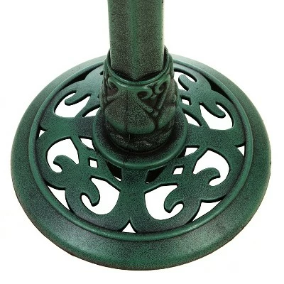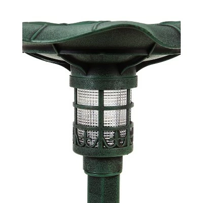 - This stunning birdbath has a patina finish for an elegant touch to your garden. Feathered friends will flock to this embellished bird bath features a LED light beneath the bowl base for a touch of ambient glow.