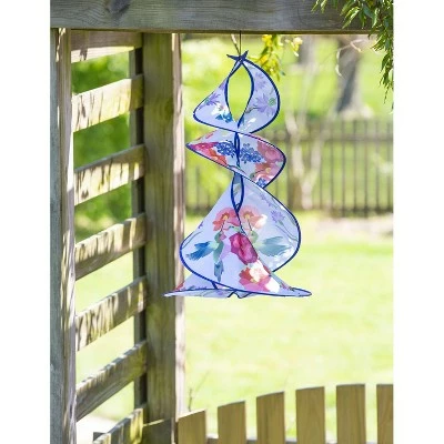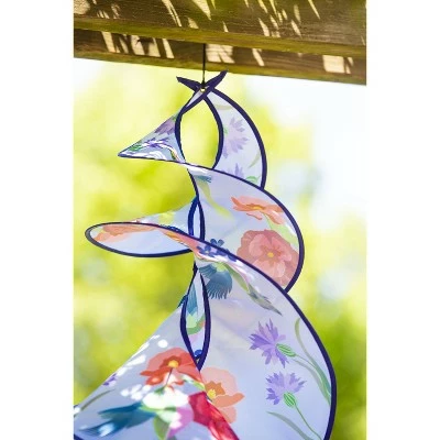 Featuring feathered friends and a vibrant floral design, this Hummingbird Meadow Twister ???is a lovely aesthetic for gardens and yards. Watch as the wind makes the design dance and twirl to create a stunning show for all to enjoy. Bring any outdoor space to life with this decorative twister! Crafted from a durable poly material that is weather-resistant and similar to our balloon spinners. Boning built into the design maintains the spiral shape and keeps the body moving continuously. Each design utilizes the same hanger as our wind chimes, using a metal swivel to prevent tangling. Collapses for easy shipping and storage. Twisters are a great gift for a loved one or family member.