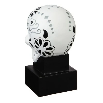 This fully dimensional LAS VEGAS RAIDERS skull garden statue is perfect for any fan’s collection. The hand painted polystone statue features beautiful artwork inspired by Dia de los Muertos sugar skulls.