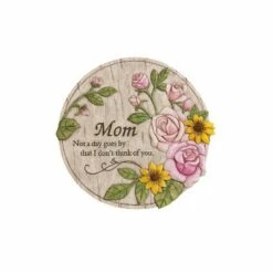 - THE PERFECT MEMORY: This round polystone resin memorial garden stone features pink roses and yellow daisies in remembrance of a mother.