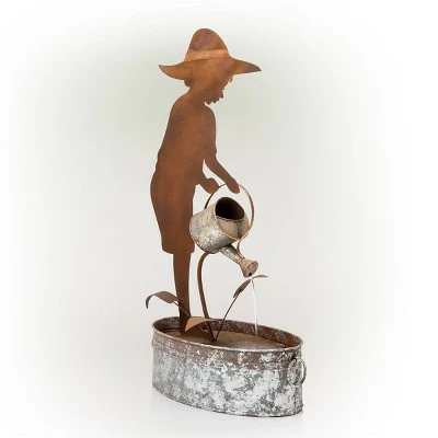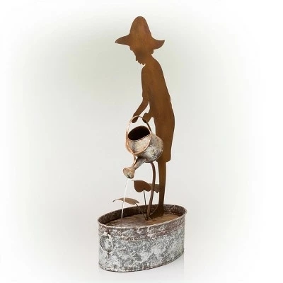 - FARM BOY SILHOUETTE FOUNTAIN: This farm boy silhouette with metal watering can fountain is the perfect addition to your outdoor décor, as interior pump keeps the water flowing by just plugging it in for your convenience