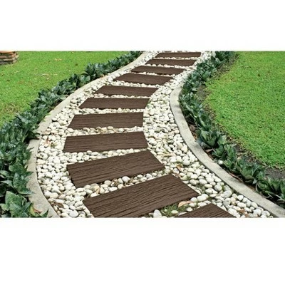 - PRODUCT- Design a unique pathway, patio or landscape accent with our recycled rubber stepping stones. The shape and surface texture mimics real railroad ties, but these are much lighter and easier to install.