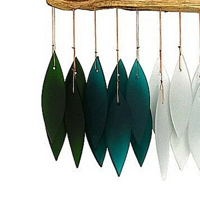 Beautiful Windchime Made With A Long Wooden Driftwood Branch Containing Glass Tear Shapes Dangling In Deep Hues Of Green And Blue Highlighted With A Frosted Area In The Center.. New. Comes Packaged In A Box.. Measurements 11.0 In H X 14.0 In W X 1.0 In D. . Made Of Glass. No Assembly Required. Indoor Or Outdoor Use. Imported