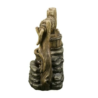 - WELL TABLETOP FOUNTAIN WITH BUCKET AND LIGHT: This brown water fountain with a well constructed of a stacked stone laying out with a branch on either side will add charm and elegance to your home or garden, while the LED light will add a touch of warmth
