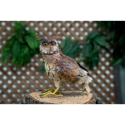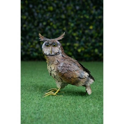 A brown metal owl with its wings tucked gave bystanders a wide-eyed look. Perfect for your lawn or garden. Decorate your home or garden with this metal owl statue with its wings tucked giving bystanders a wide-eyed look, and adding a lively atmosphere to any space. Let your home or garden become entranced with this heartwarming and lovely owl statue
