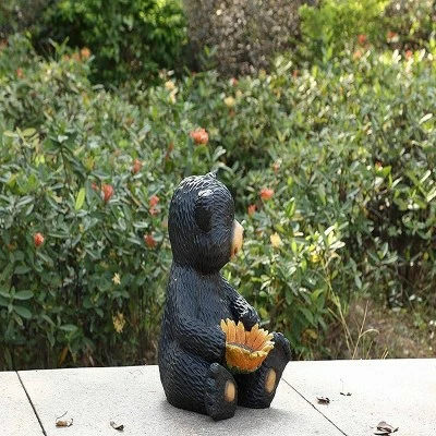 - SITTING BEAR CUB HOLDING A SUNFLOWER: Decorate your home or garden with this enchanting sitting bear cub statue holding a sunflower, and add a lively atmosphere to any space