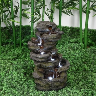 - MULTI LEVEL ROCK WATER FOUNTAIN WITH LIGHT: This stunning brown rock water fountain will add charm and elegance to your home or garden, while the LED light will add a touch of warmth to the atmosphere