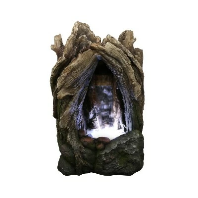 - TREE TRUNK INSPIRED WATERFALL FOUNTAIN WITH LIGHTS: This brown tree trunk water fountain will add charm and elegance to your home or garden, while the LED lights will bring it to life when it gets dark