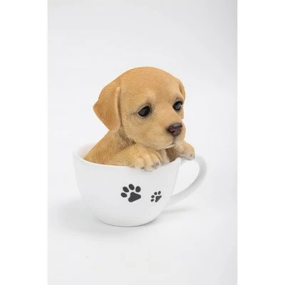 - ADORABLE LABRADOR PUPPY IN A CUP FIGURINE: Decorate your home or garden with this adorable pup in a cup adorned with realistic black paw prints, and add a lively atmosphere to any space